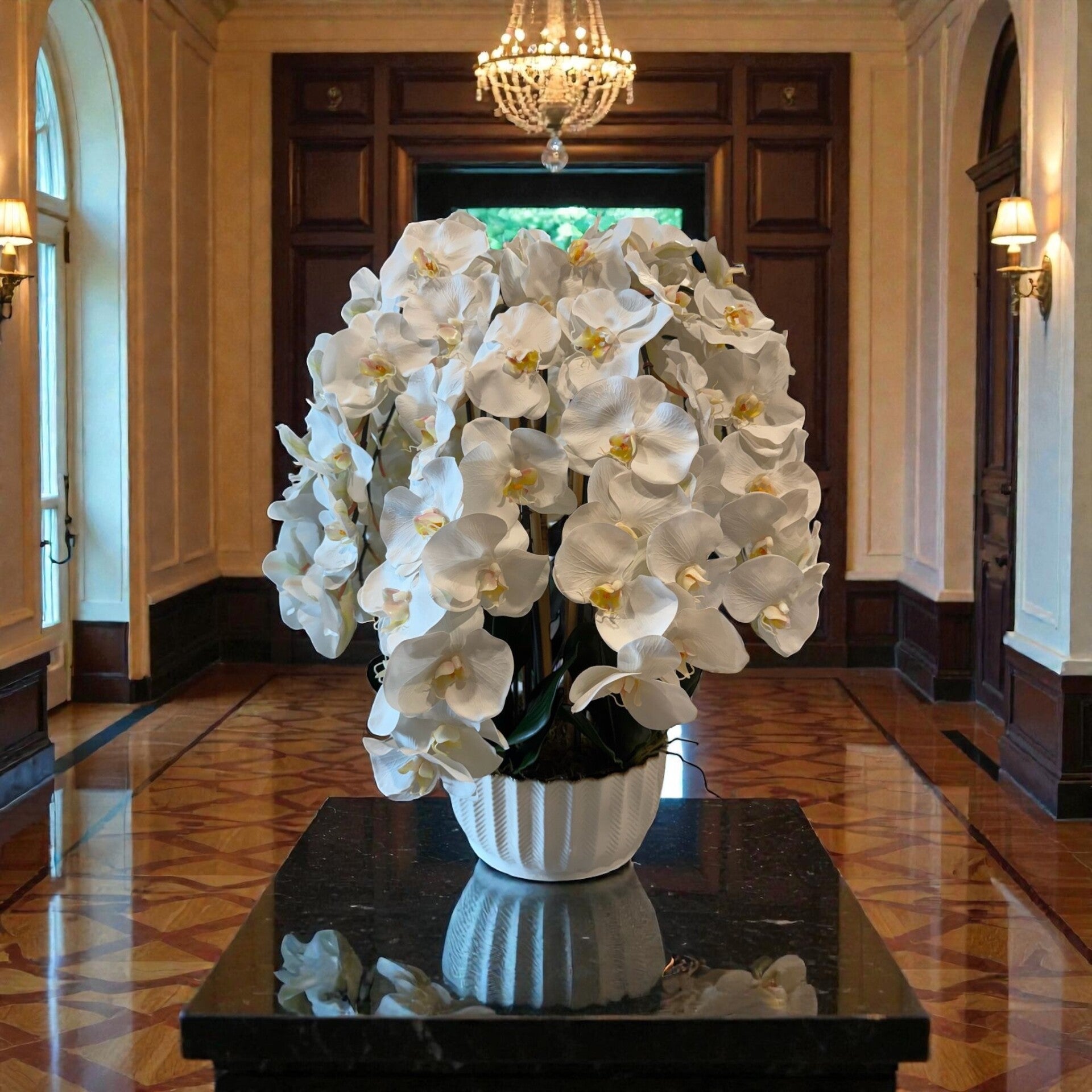 Artificial Orchids phaleanopsis no need to add water no maintenance, whether it's the centerpiece of your home, office, or upscale restaurant, this meticulously crafted arrangement transforms any interior into a sophisticated sanctuary, exuding refitment and prestige. Ceramic base